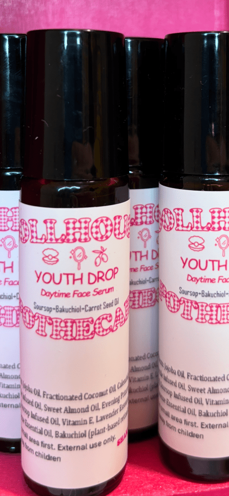 Youth Drop Convenient face roller packed with intentional ingredients like soursop oil, carrot seed oil, evening primrose oil and nature’s retinal “Bakuchiol”. This little roller is a small but mighty everyday anti-aging essential.