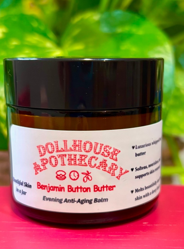 Ingredients: Organic Sweet Almond Oil, Grassfed Tallow, Organic Coconut Oil, Calendula Oil, Organic Chamomile Oil, Beeswax, Shea Butter, Vitamin E, Cherry Extract, Organic Mica, Cherry Blossom Essential Oil