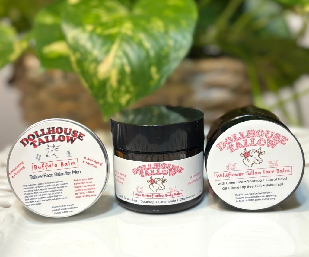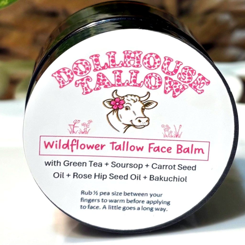 Wildflower Tallow Face Balm – $18 Our women’s tallow face balm has so many added beneficial ingredients for powerful anti-aging. With soursop, green tea, rose hip seed, carrot seed, and bakuchiol (nature’s retinol). This is luxury skin care. 1oz