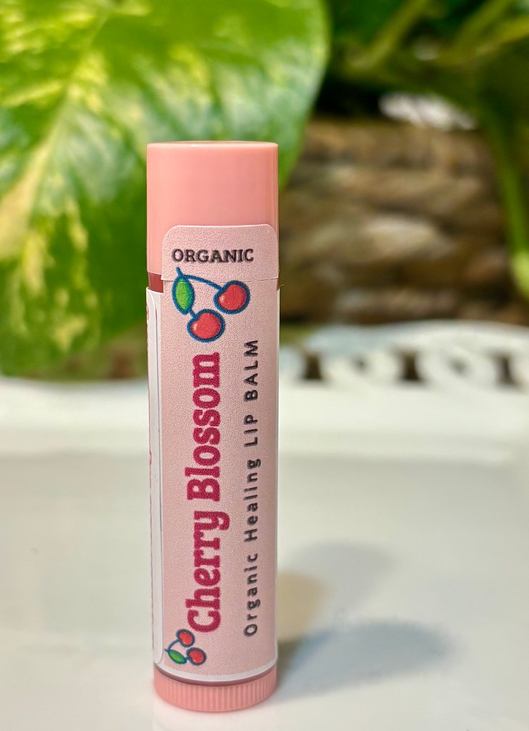 Cherry Blossom Healing Lip Balm – Now with Tallow! This lip balm heals, moisturizes, protects. It’s scented, flavored and tinted all with natural & organic ingredients!