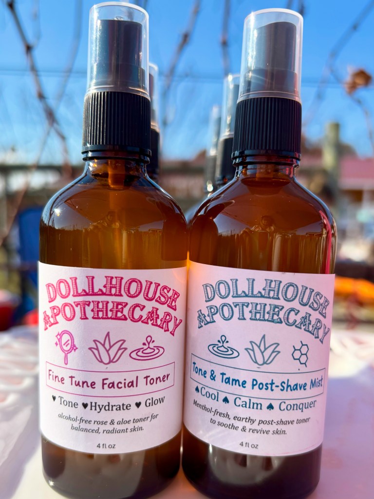 Men & Women’s Facial Toners pure clean and crisp with intentional ingredients. Pure rose water included in the women’s toner for a balanced radiance. The men’s toner has tea tree & aloe for a post shave revival.